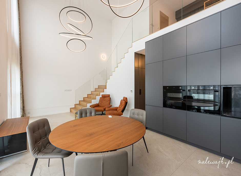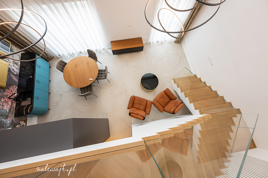Zdjęcia z sesji fotograficznej dwupoziomowego mieszkania do sprzedaży, do oferty na portalach ogłoszeniowych i w social mediach. Kadry prezentują układ funkcjonalny mieszkania, rodzaje pomieszczeń, wyposażenie wnętrz, standard wykończenia. Sesja fotograficzna wnętrza obejmowała również zdjęcia detali architektonicznych i wyposażenia wnętrza, fotografie części wspólnych bloku, zdjęcia na zewnętrz budynku z poziomu terenu oraz z wysokości. Kompleksowa sesja fotograficzna dla prywatnego inwestora, w detalicznym zakresie prezentuje mieszkanie i jego atuty