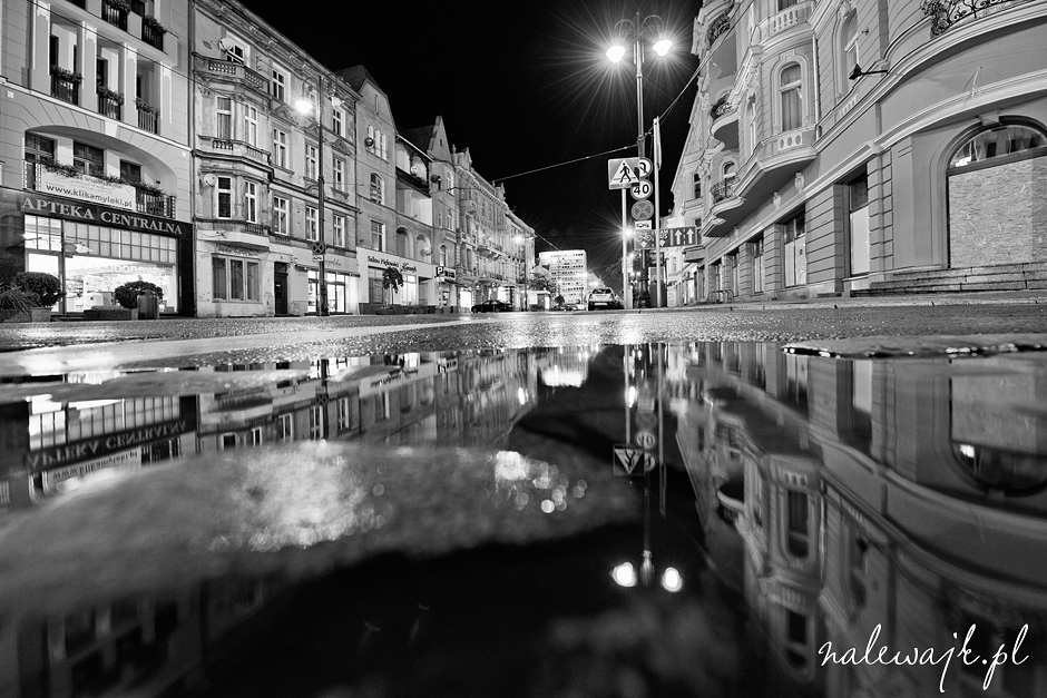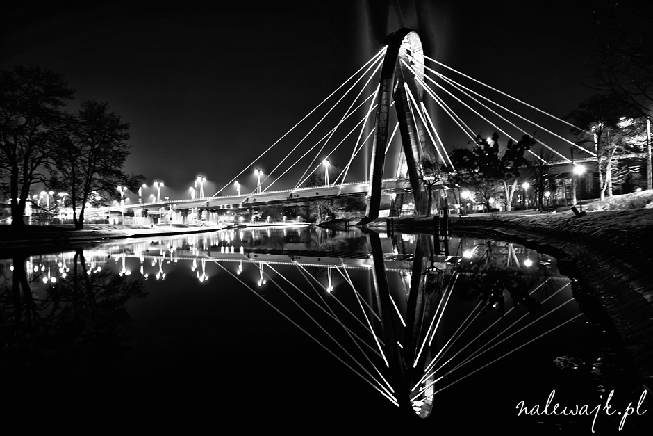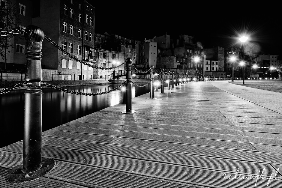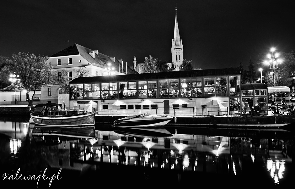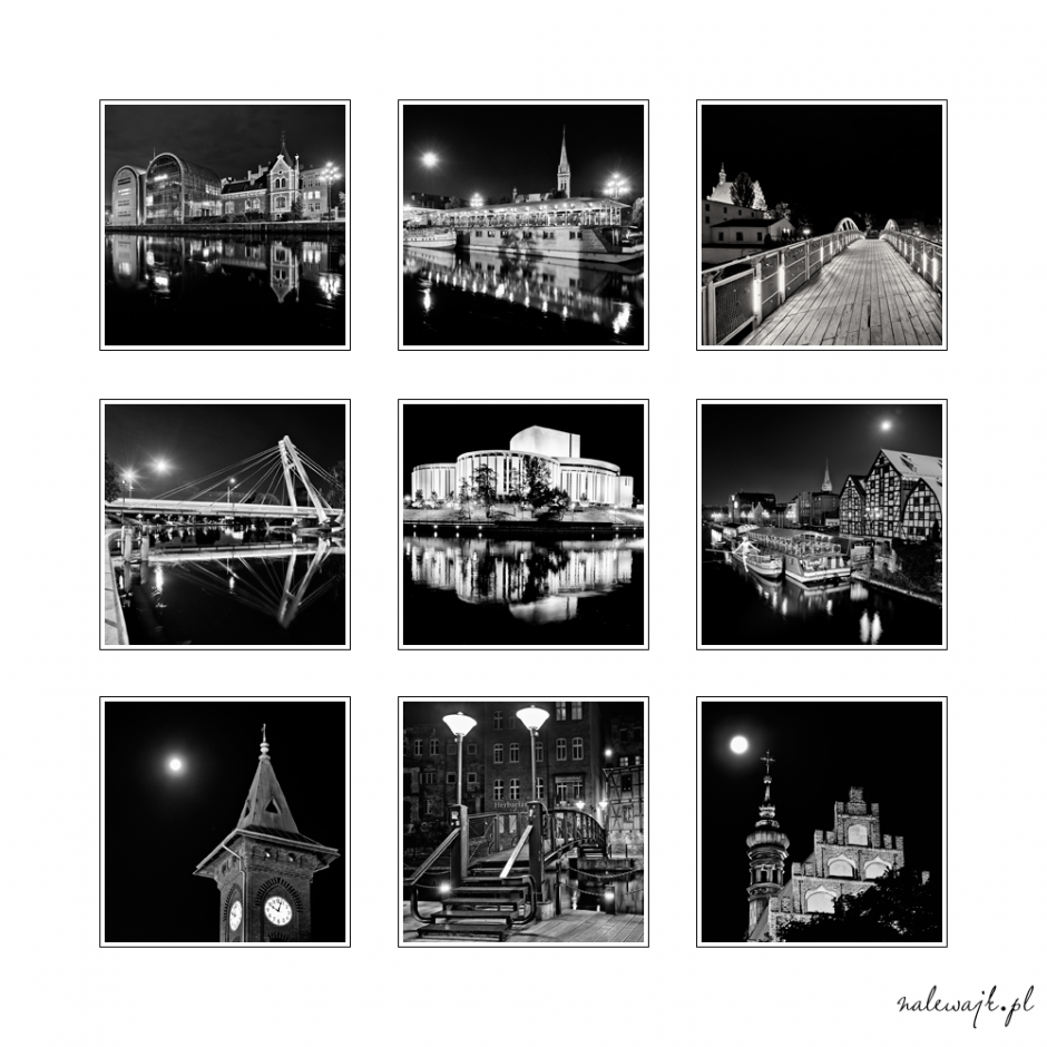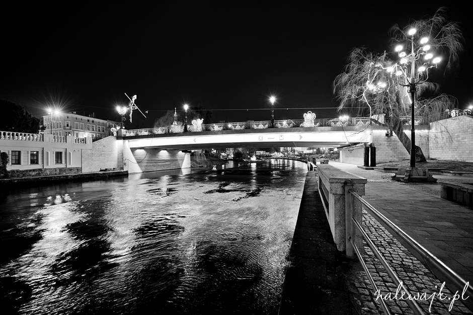 Moje miasto Bydgoszcz, tym razem na zdjęciach w odcieniach czerni i bieli. Zapraszam do fotograficznego spaceru ulicami Bydgoszczy, po zachodzie słońca. Miasto na fotografii w blasku ulicznych latarni, odbicia świateł w lustrze wody, neonów, świateł ulicznego ruchu. Miejsca powszechnie znane i często odwiedzane przez mieszkańców i turystów. Architektura przestrzeni miejskiej, której fotografie znajdują się w przewodnikach turystycznych, informatorach dla zwiedzających. Bydgoszczy jest wyjątkowa, określana Wenecją północy, miasto nad brzegiem Wisły, Brdy i rzeki Młynówki oraz Kanału Bydgoskiego. W centrum miasta znajduje się kilkadziesiąt mostów, kładek, śluz i jazów niwelujących poziomy wody i innych urządzeń hydrologicznych. Na uwagę zasługuje architektura starego miasta, przepiękne kamienice, uliczki, parki i skwery. Na trasie spacerów powinny się znaleźć przede wszystkim Wyspa Młyńska, Secesja Bydgoska i Spichrza. Już wkrótce na blogu kolejne atrakcje Bydgoszczy na zdjęciach, również w kolorze.