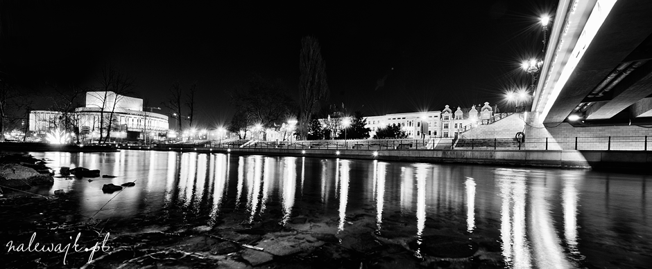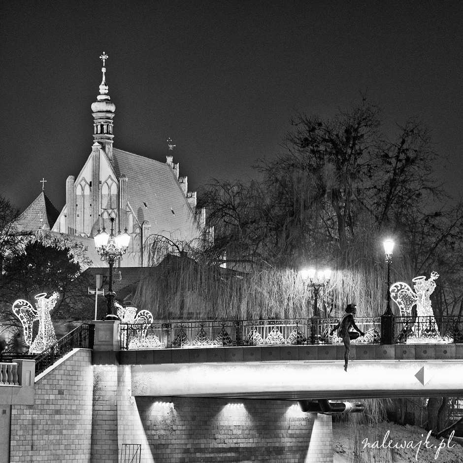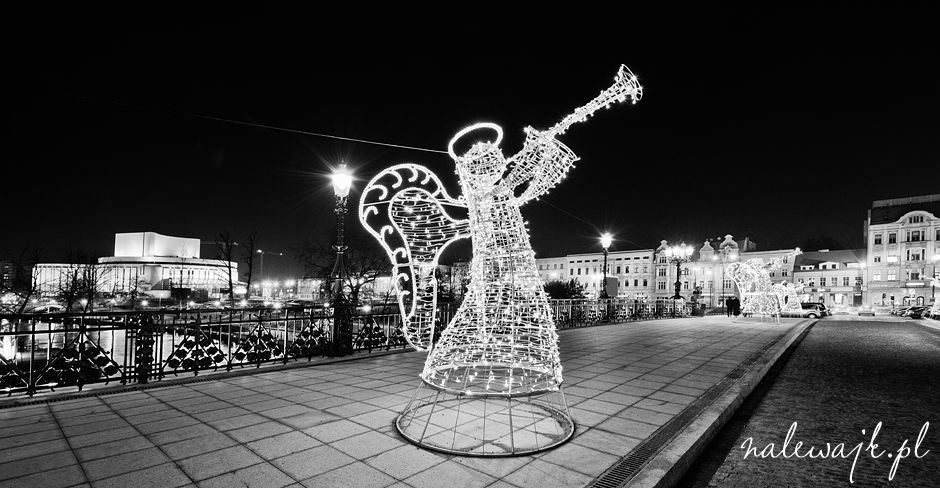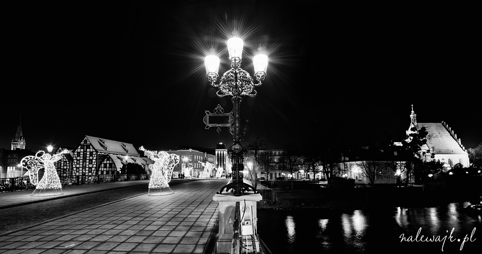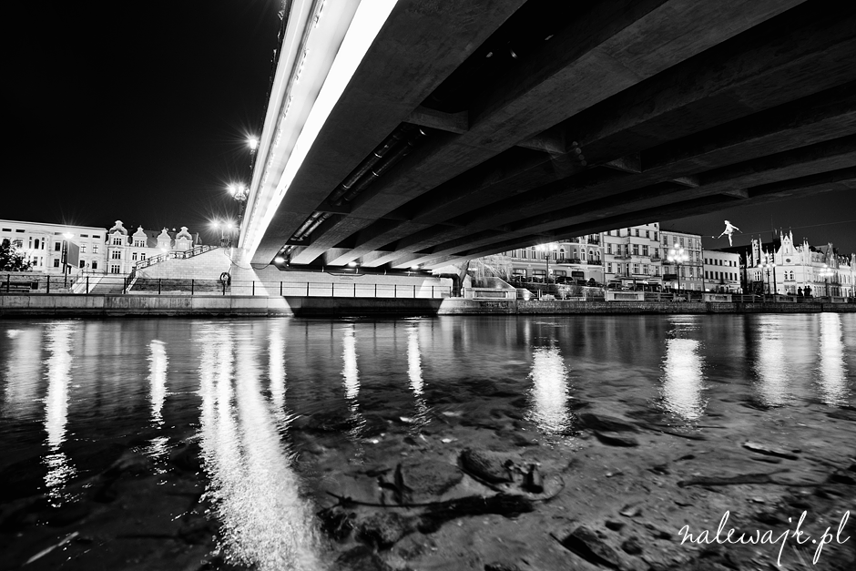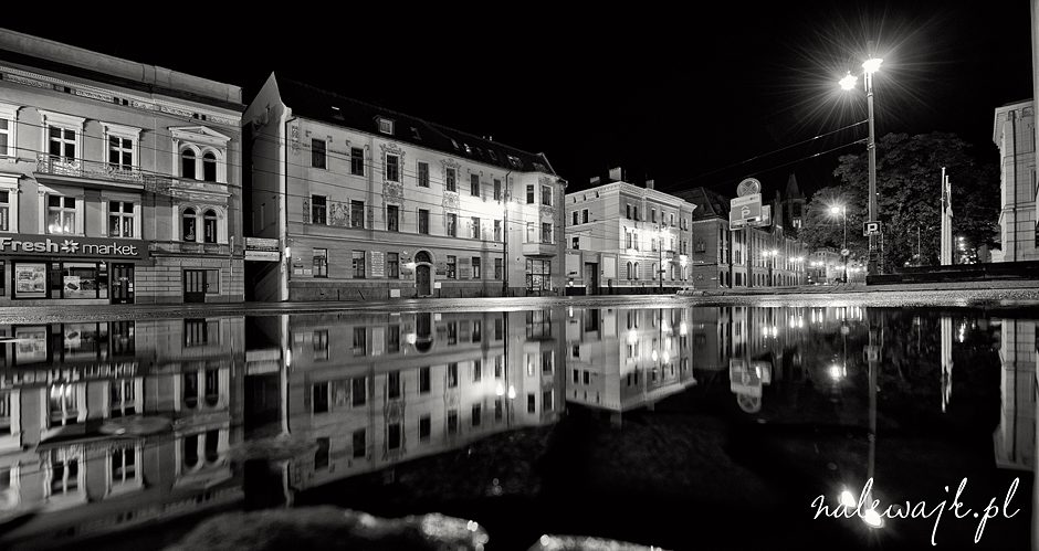 Moje miasto Bydgoszcz, tym razem na zdjęciach w odcieniach czerni i bieli. Zapraszam do fotograficznego spaceru ulicami Bydgoszczy, po zachodzie słońca. Miasto na fotografii w blasku ulicznych latarni, odbicia świateł w lustrze wody, neonów, świateł ulicznego ruchu. Miejsca powszechnie znane i często odwiedzane przez mieszkańców i turystów. Architektura przestrzeni miejskiej, której fotografie znajdują się w przewodnikach turystycznych, informatorach dla zwiedzających. Bydgoszczy jest wyjątkowa, określana Wenecją północy, miasto nad brzegiem Wisły, Brdy i rzeki Młynówki oraz Kanału Bydgoskiego. W centrum miasta znajduje się kilkadziesiąt mostów, kładek, śluz i jazów niwelujących poziomy wody i innych urządzeń hydrologicznych. Na uwagę zasługuje architektura starego miasta, przepiękne kamienice, uliczki, parki i skwery. Na trasie spacerów powinny się znaleźć przede wszystkim Wyspa Młyńska, Secesja Bydgoska i Spichrza. Już wkrótce na blogu kolejne atrakcje Bydgoszczy na zdjęciach, również w kolorze.